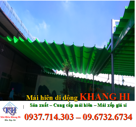 – Khang Hi là đơn vị kinh doanh mái hiên , mái xếp đẹp , chất lượng hàng đầu tại Việt Nam nói chung và TPHCM nói riêng …. Với những ưu thế nổi trội về mặt mục đích cũng như kiểu dáng , màu sắc mà mái hiên , mái xếp đã và đang dần lấn át mái tôn , mái nhựa trên thị trường nước ta … Ngày trước , khi mới ra đời , vải bạt làm mái hiên còn rất thô sơ đơn giản nhất là rất dễ bị mục nát do nắng mưa … Nhận thấy điều đó , các nhà khoa học đã nghiên cứu và pah trộn thêm vào trong quá trình sản xuất vải bạt các hợp chất chống ăn mòn tốt , bền với nắng mưa để cải thiện chất lượng cho vải bạt …. Và ngày nay nó càng ngày càng mang lại sự tin tưởng hơn , cần thiết hơn cho người sử dụng . Với ưu điểm : độ bền với thời tiết cao , gọn nhẹ , dễ thi công , lắp đặt , dễ sử dụng …. Hơn nữa còn có các mái hiên xếp di động rất thuận tiện cho người dùng trong việc di chuyển , điều khiển mái hiên đến các vị trí mong muốn …. Chính vì thế mái hiên xếp, mai xep vải bạt đang là lựa chọn hàng đầu , số 1 tại nước ta …. trong việc che nắng che mưa trước hiên nhà , cửa sổ , nhà hàng v..v…